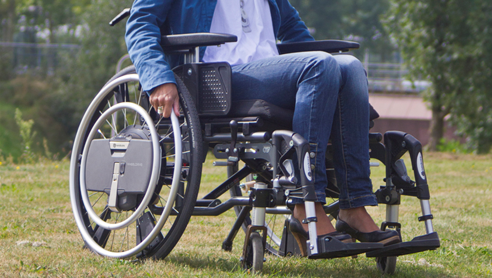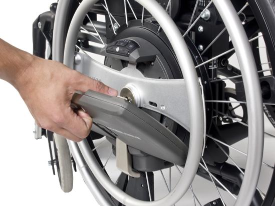 "这是一个可自由切换电动、手动模式的模块化电动轮椅。该轮椅填补了纯手动轮椅和纯电动轮椅的市场空白,其核心在于可兼容市场上多款轮椅的电动轮子,方便安装和拆卸,用户可以不购置新的轮椅,而是直接更换一对轮子,即可把原有的机械轮椅改变成电动轮椅。该轮椅配置大小两个轮箍,大轮箍手动驱动,小轮箍电动驱动。电动驱动包括电机,电池,多种感应器及复合运动模式选择,反应灵敏,电动、手动切换自如,只需用户用手触摸即可。"