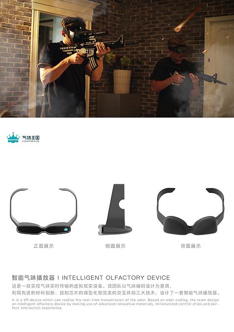 该播放器的设计理念在于给予每种气味唯一标识码,根据应用场景脚本,微型芯片控制播放器,通过对传输管路开合,从而达到气味的实时传输和表达。同时,通过整理形成了囊括数万种气味的气味库, 完成编码构建了“气味数字词典”,结合纳米技术,开发了新型的气味贮存材料和疏味材料。利用3D打印技术,实现各种应用场景设备结构的个性化定制,大大提升了制作精细度和广度,使得市场化应用成为可能。 这套可实现气味实时传输的智能播放设备向人们展示了一个全新的虚拟现实体验,在电影、游戏、广告、主题公园和幼儿教育等多个行业有着广泛的应用前景。 关于该产品的报道在国内外主流媒体转载不断。