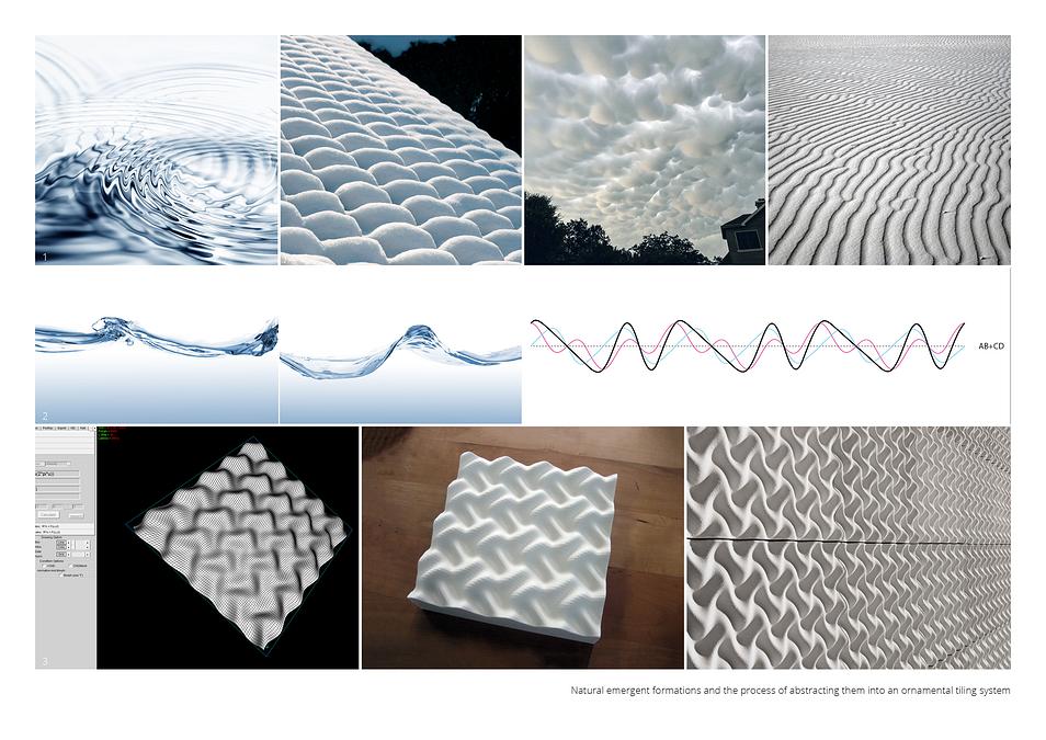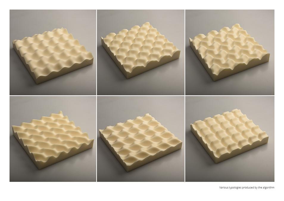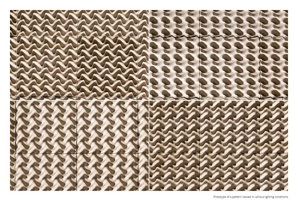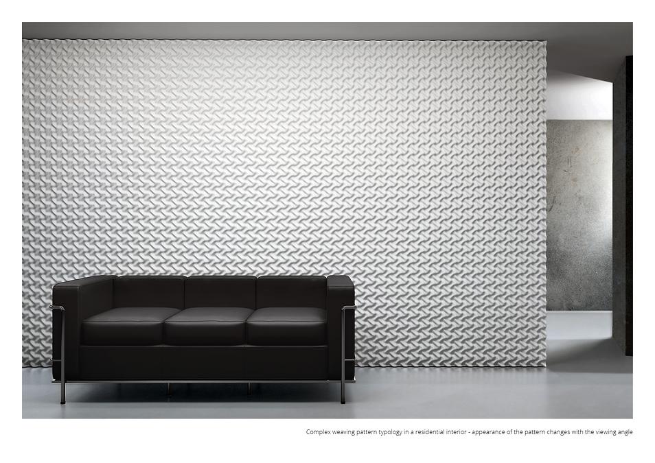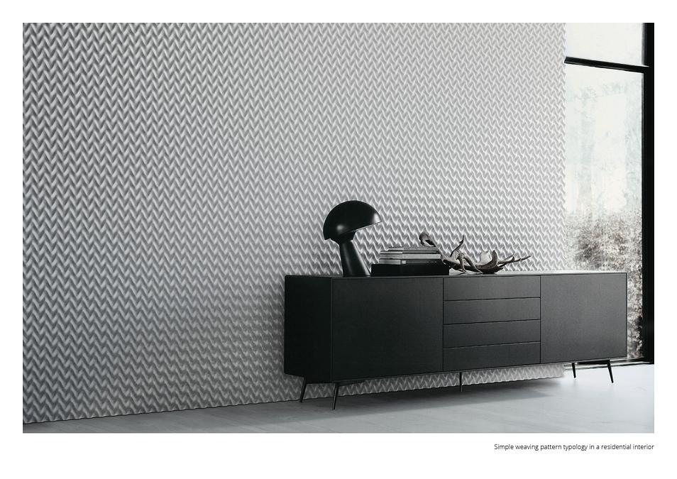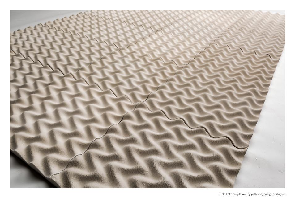 这是一款尚未商品化的三维纹饰装饰墙。设计师采用了计算机代数系统进行概念设计,严格地控制了单位个体的几何性质,通过设定其本身的波动曲线关联自然景观,唤起空间内的感知,让身处其中的人们能够产生声学上的适应性。这款设计可以很好地适应各种类型的空间和环境。