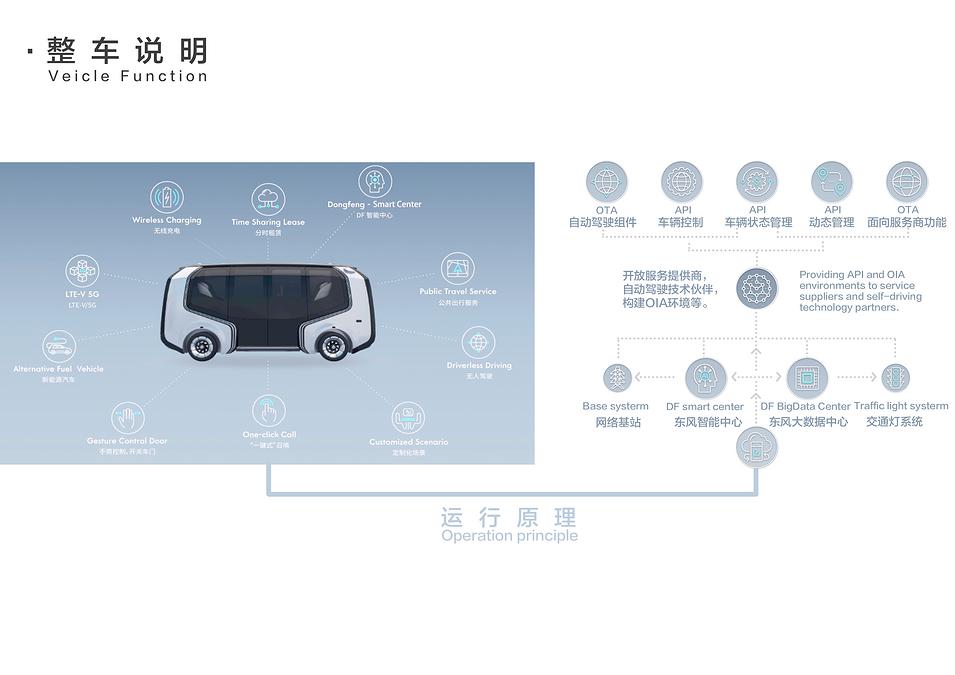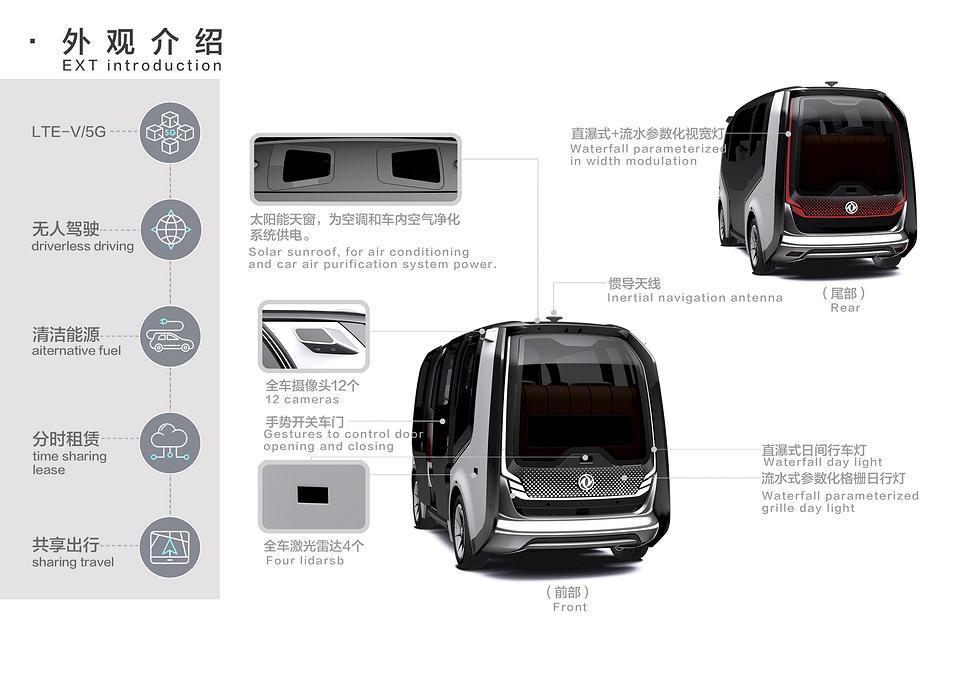 关于解决“最后一公里出行难”的方式,既可以是一个共享的出行方式,也可以是一个定制化的移动空间。繁享(商务版)是解决“最后一公里”的高端商务版的电动无人驾驶共享车。该产品由自动驾驶、远程驾驶、调度监控后台3个模块组成,集成LTE-V/5G、自动驾驶、分时租赁、公共出行、场景定制、无介质交互等多项技术与服务。作为国内首台融合5G远程驾驶技术的L4级自动驾驶汽车,展示了东风对未来智慧汽车生活的新思考。