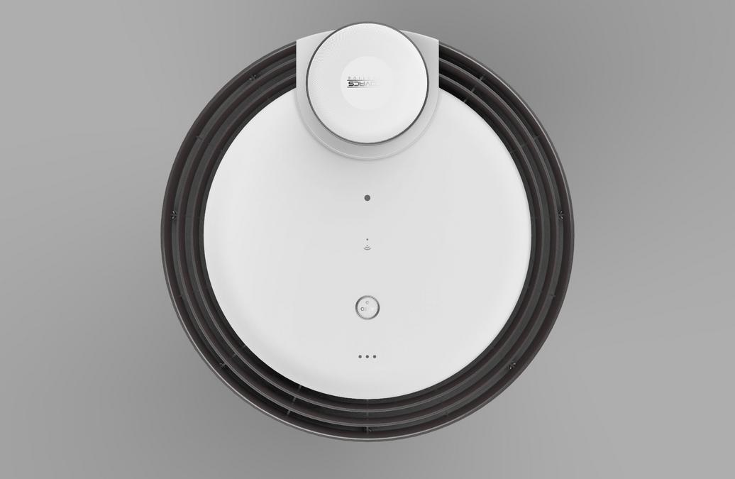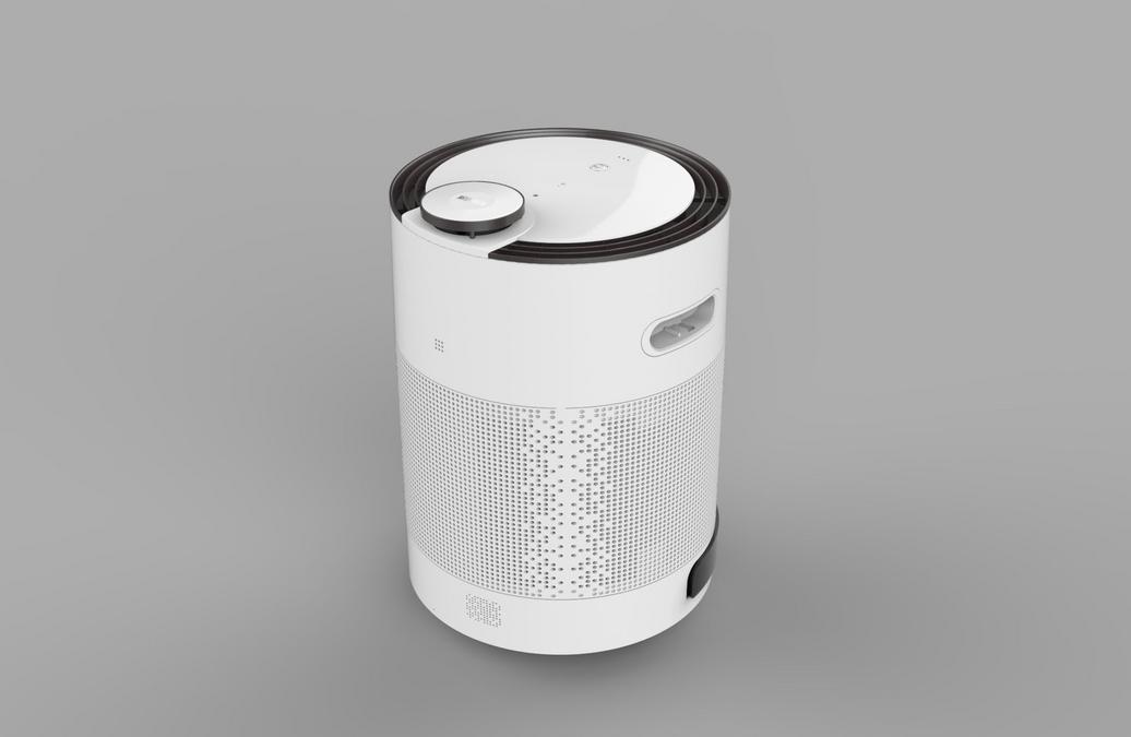 这是一款实现多房间净化的智能移动空气净化机器人。该产品造型简单,有科技感。利用先进定位技术、行走、防撞智能系统,使机器人灵活运动,可远程遥控;内置智能感应,主动感知生活环境的变化。同时采用4重环形过滤系统,高效清除有害物质。