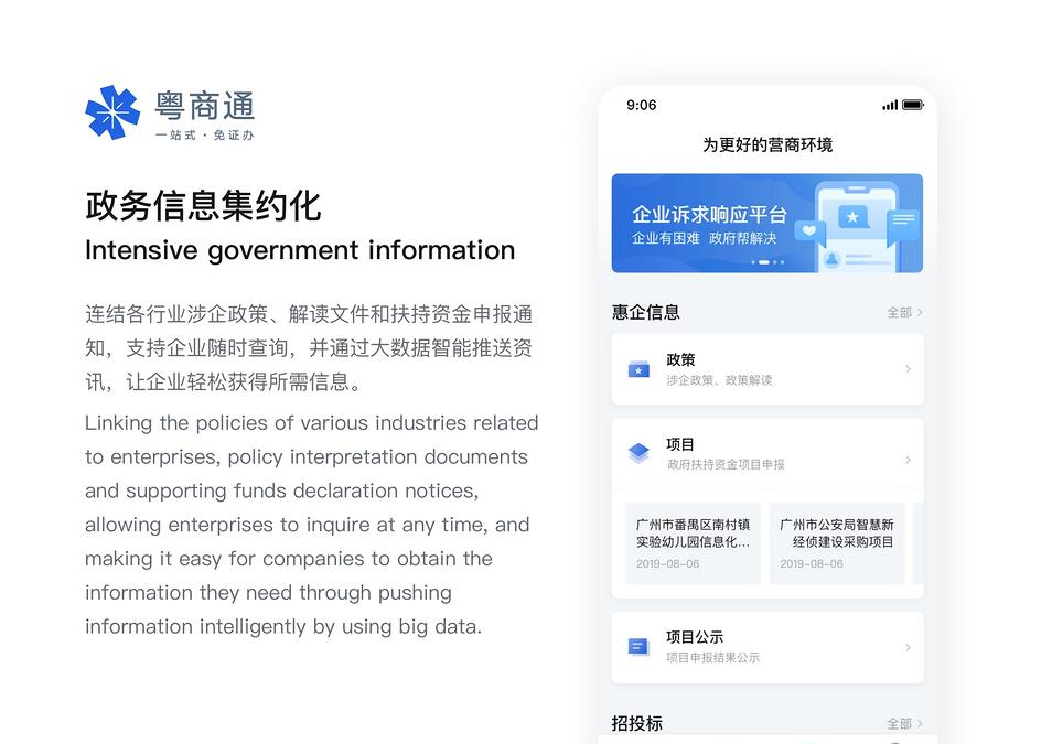 涉企政务服务平台,面向全省1200万商事主体,实现企业办事“一站式”、“免证办”、“营商通”。