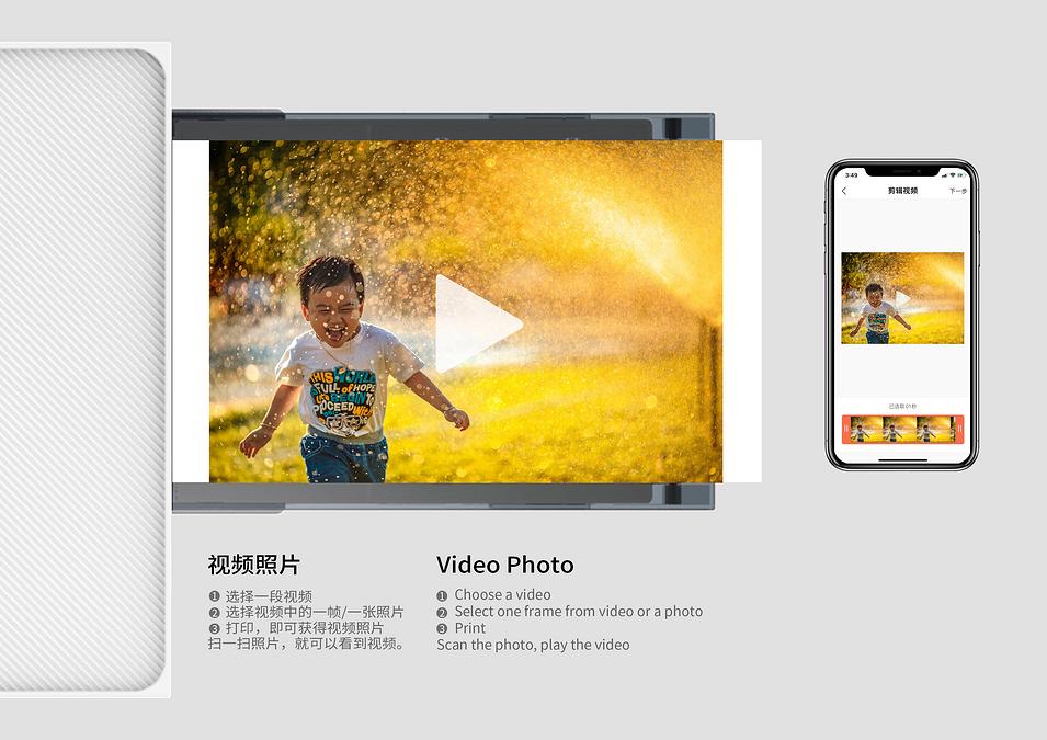 极印照片打印机是通过结合AR技术,内置电池,APP设计,使照片打印更符合现代人生活的照片打印机