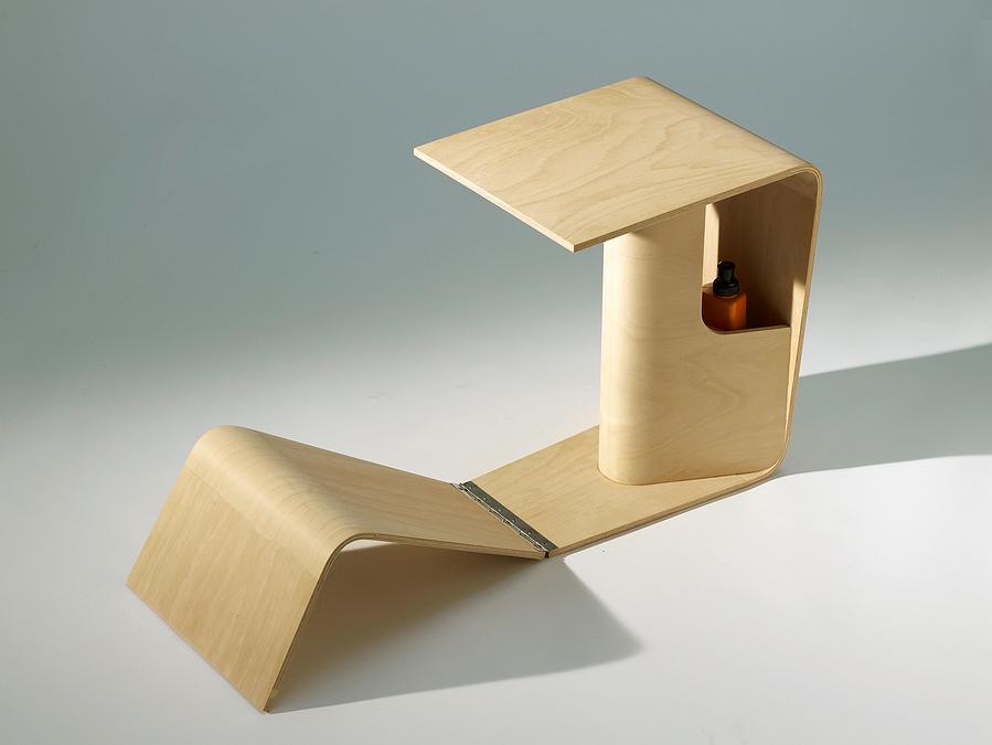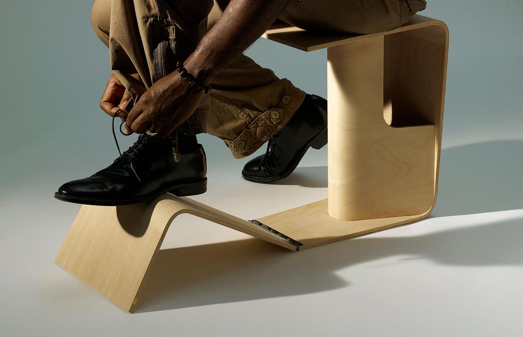 这是一款是为需要穿脱或清洗、修理鞋子提供便利而设计的家具。该产品由一个弯曲向上供的形状和一个圆柱形支撑的平面组成,精巧的设计可以有效地减轻抬脚过程中脊椎受到的压力,减少人在弯腰前倾时完成这些日常活动中的不便。