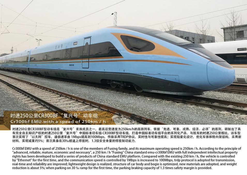 时速250公里CR300BF型动车组是“复兴号”家族成员之一,最高运营速度为250km/h的高铁列车