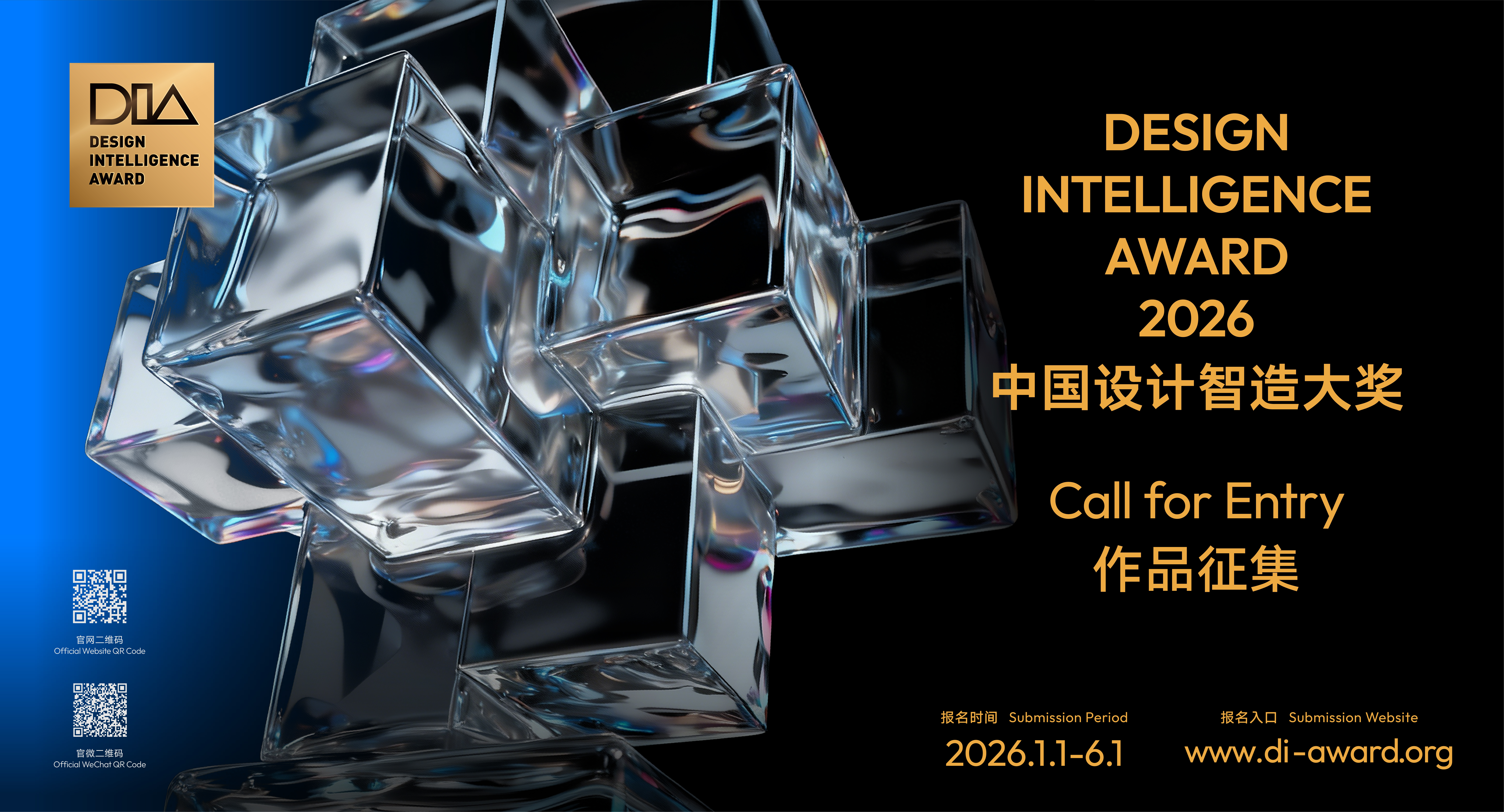 2023年3月12日,第八届中国设计智造大奖(Design Intelligence Award,简称“DIA”)正式启动,面向全球征集优秀设计作品。在北京时间2023年6月30日24时报名截止前,任何设计公司、在职设计师、独立设计师、青年设计新秀都可以通过官网(www.di-award.org)提交作品,共同冲击年度总奖金500万元,最终入选者将获得最高100万元的奖励。